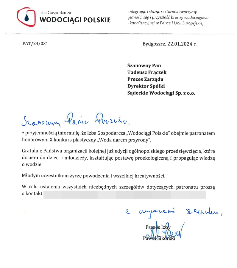 Konkurs plastyczny potrwa do 15 marca 2024 r. (piątek). Ogłoszenie wyników i wręczenie nagród odbędzie się 22 marca 2024 r. w Światowym Dniu Wody.